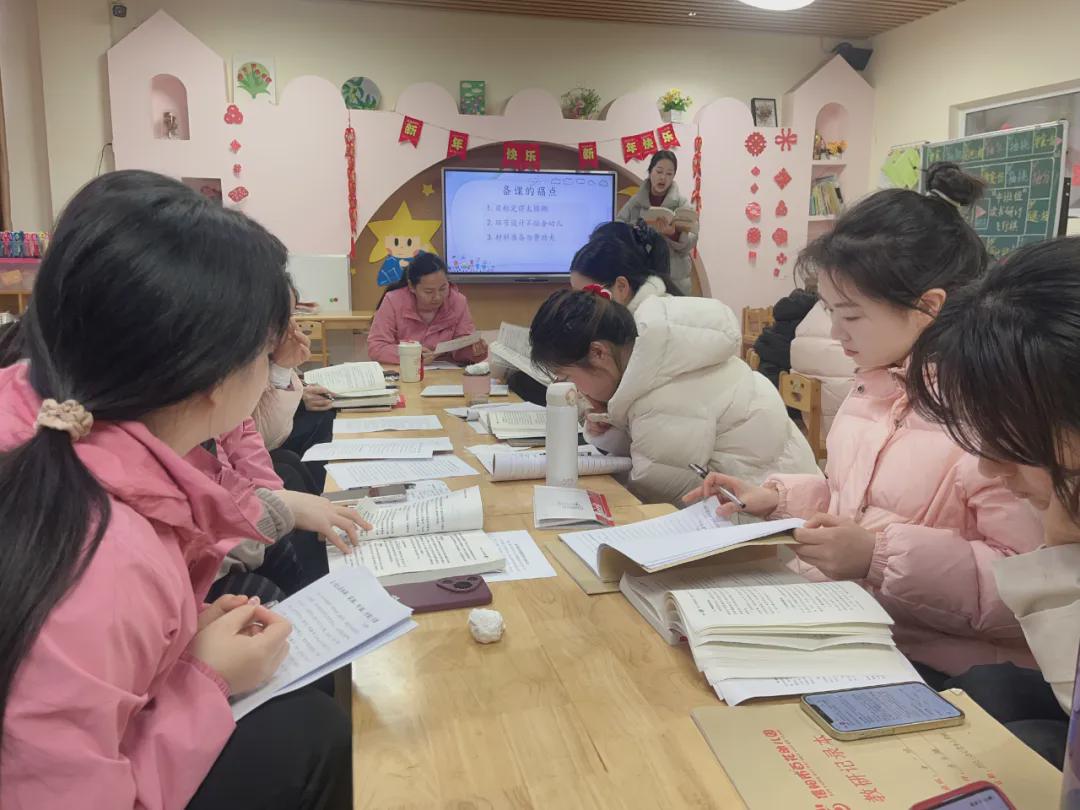 为解锁这些教学密码,信阳市百花幼儿园以《幼儿园备课・说课・听课・评课》一书为桥梁,分小、中、大三个教研组开展专项教研。活动伊始,各教研组长有序组织开场,小班以活泼的音乐游戏点燃氛围,让老师们在轻松互动中快速进入状态;中大班组结合组内教学实际,点明研讨核心方向。全体教师怀揣对教育的热忱与初心,在理念碰撞中凝聚智慧,在实践探讨中锤炼本领,在每一次交流与思考中落地生根。