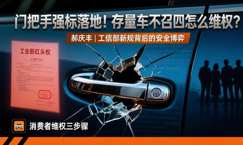 工信部《汽车车门把手安全技术要求》强标已发布,明确2027年1月1日起实施,直指电动门把手断电、碰撞后无法开启的致命隐患。新规设过渡期,存量车型需2029年1月前整改,却未强制召回。目前国内超70%存量新能源汽车未达标,“不强制召回”的界定引发热议,消费者该如何守护自身安全、依法维权?
