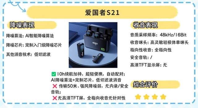 一句话推荐:轻量化设计兼顾收音品质,短视频创作的实用伙伴。