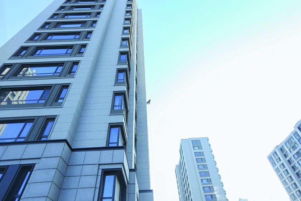 年过六旬的1号楼居民赵先生看到了小区外立面玻璃的变化也很高兴,尽管自家居住的1号楼还没有开始清洗,但他已经开始期待变靓的时刻。赵先生说:“这是我在石家庄购买的第一套住房,现在就我和老伴带着两个孙辈在这儿住,自从前年换了物业负责人之后,小区变得越来越好了。服务态度好是一方面,关键是能为居民着想。”