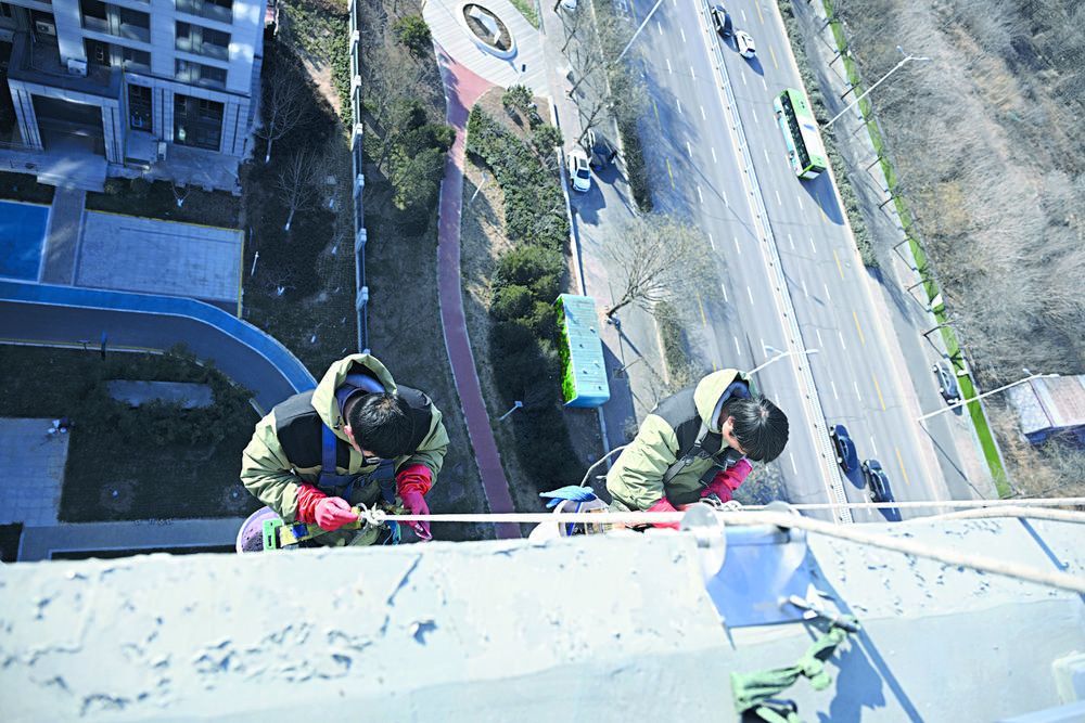 不少居民特地拍下“蜘蛛人”作业的身影,定格这冬日里最动人的瞬间。