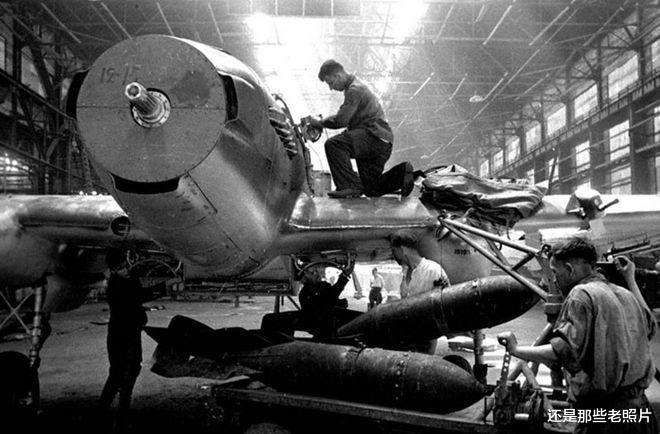 苏联飞机制造厂里的 Il-2攻击机,给人们正准备在飞机上挂试弹。