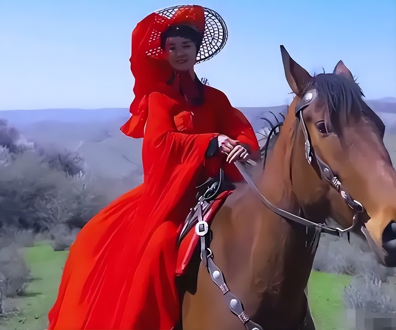 雪原无垠,风卷着碎玉般的雪沫子掠过,一抹炽烈的红,突然撞进苍茫天地里。那是贺娇龙,身披红斗篷,策马扬鞭,马蹄踏碎一地银霜。她的发丝被风拂起,眉眼亮得像雪地里的星,身后是昭苏的天马,四蹄生风,衬得她像从武侠书里走出来的侠女。