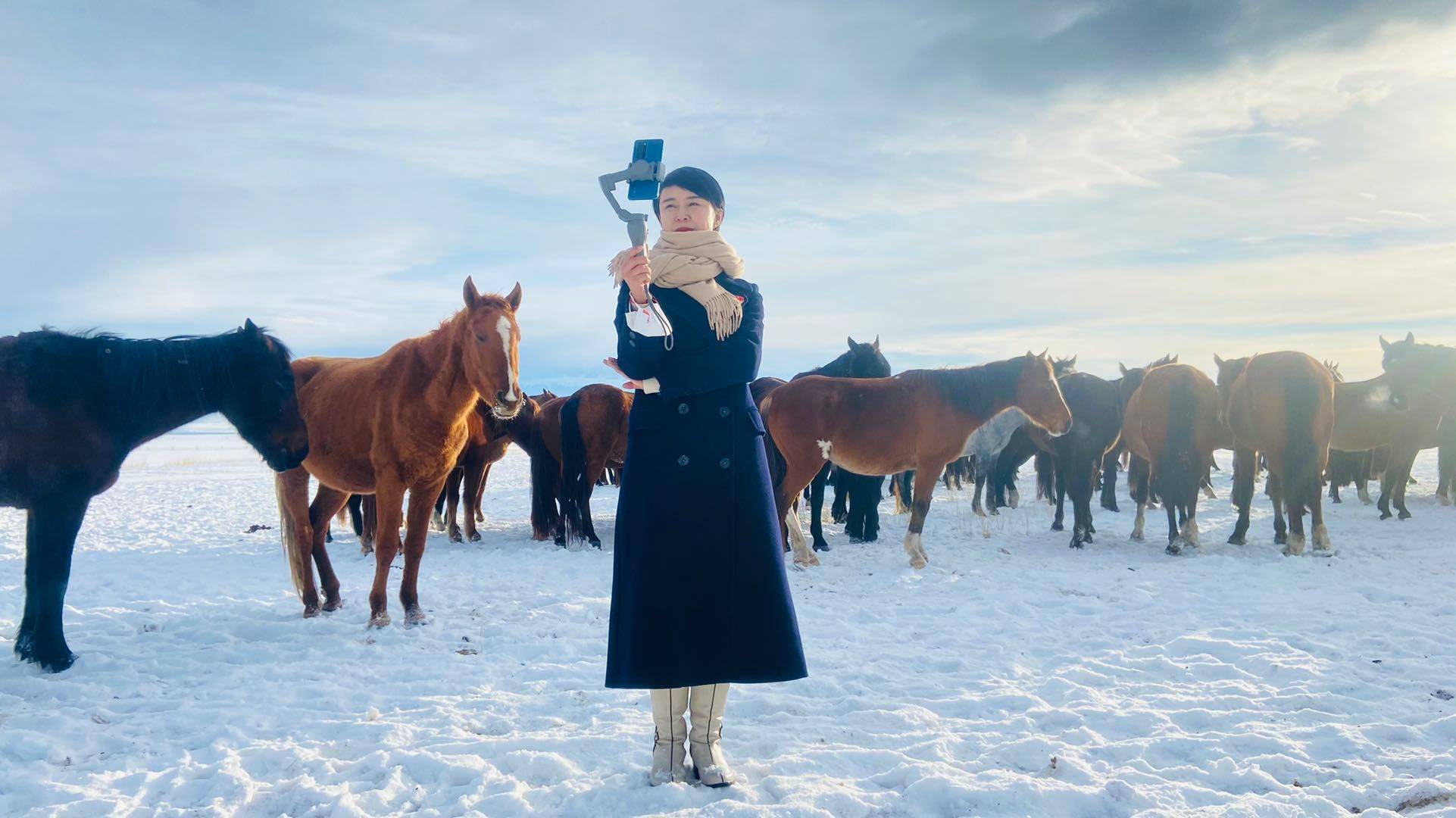 没人知道,镜头里这短短几十秒的飒爽,是她踩着冻得发僵的普通靴子,攥着滑溜溜的铁马镫,在零下十几度的寒风里,抽午休的两小时拍出来的。马是弟弟的,开拍前,弟弟还摸着马脖子念叨:“可得稳着点,别摔着我姐。”