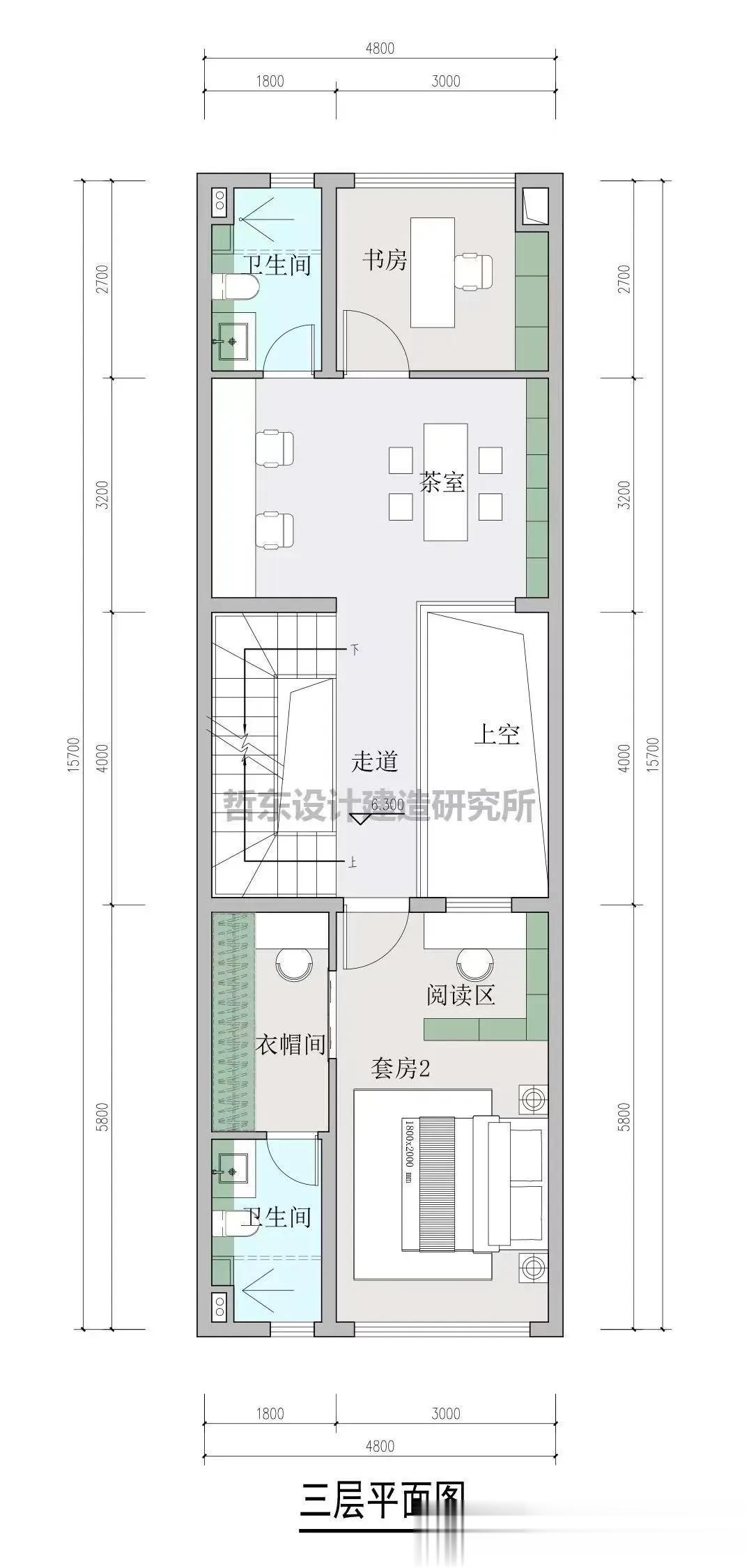 ◦ 利用15.9米进深,纵向布局公共与私密空间
