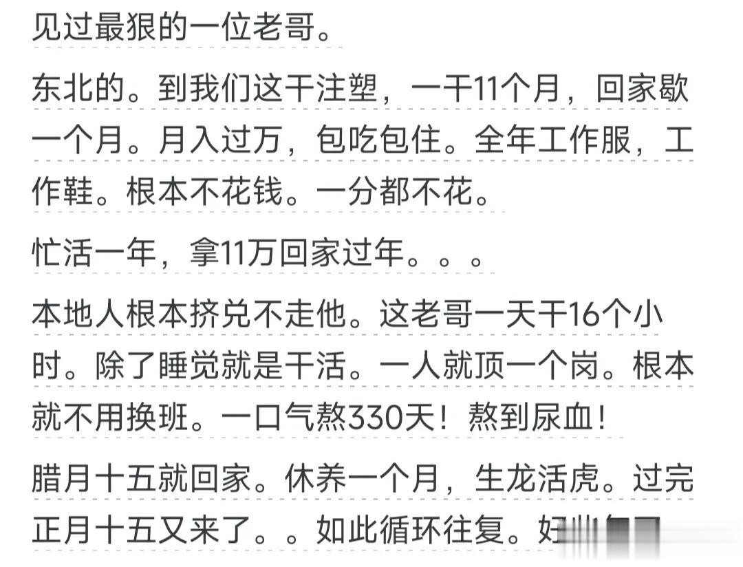 到处都是这样的人,这种人手脚快,能吃苦,但性格也比较固执,周边同事,工友越说,她(他)越干得起劲,最后把单价干地上了,拍拍屁股跑了,或者提起来干一线班组长。