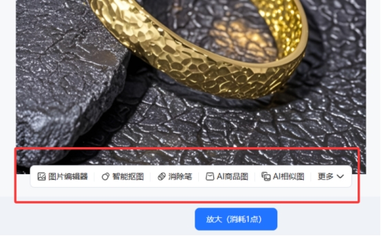 并且,如果你对放大后的图片感到满意的话,还可以直接在易可图上无缝进行作业。只要将鼠标悬停在结果图上,然后点击图片编辑,就可以直接进入平台内的图片编辑器,进行裁剪调色,或使用智能抠图、消除笔等工具进行图片处理。