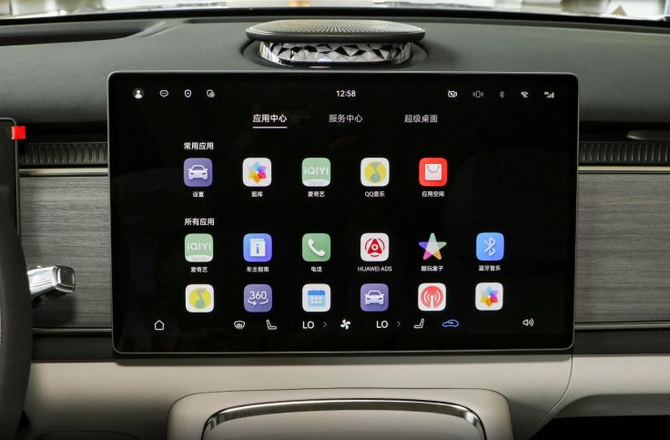 中控屏尺寸为15.6英寸,车机不出预料搭载了华为Harmony OS操作系统,整套车机体验和华为平板电脑不相上下,流畅度和底层操作逻辑都挑不出太多毛病,可玩性和功能性都值得好评。另外值得注意的是,副驾驶手套箱采用抽屉形式设计,打开后不仅可以用来办公,偶尔也能应急当个餐桌使用,场景化属性比较强。