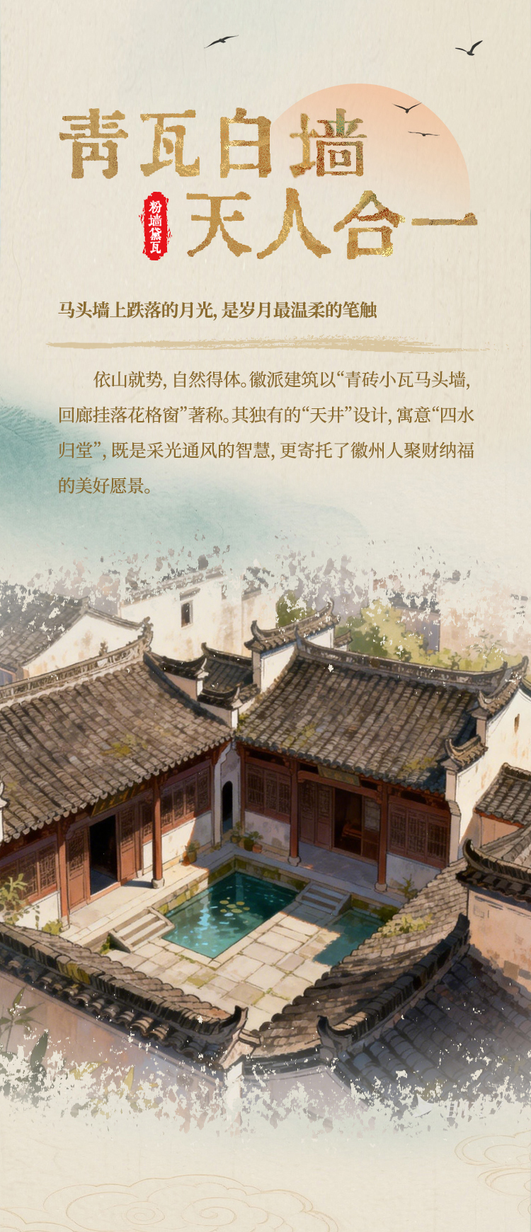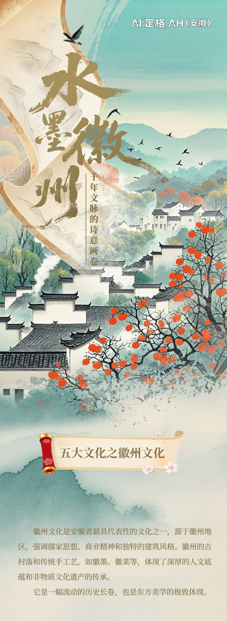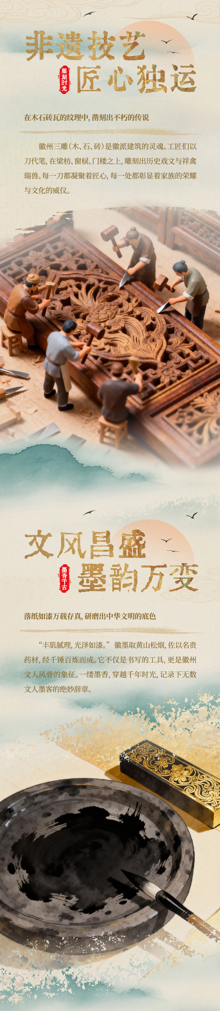 青瓦白墙,错落成画;徽商古道,迤逦如诗。首张长图以AI视角漫游徽州——雕梁画栋间藏匠心天地,墨砚戏曲中传文脉悠长。这里不仅是徽商故里,更是镌刻在山水之间的生活哲学。让我们一同展开这幅画卷,于粉墙黛瓦中见气象,在寻常巷陌里读春秋。