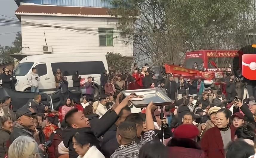 人多了,问题也跟着来了,八千人要吃饭,两头猪肯定不够,后来加到十头,村里的人连夜搭起灶台,大家分头去洗菜、切肉、烧火,都是主动帮忙,停车没地方停,上厕所排长队,人流也没人管,当地派出所已经提前了解情况,准备到时候派警察维持秩序,到现在为止,没人投诉说被骗,也没人说被强迫买东西,确实没有商业化的操作。
