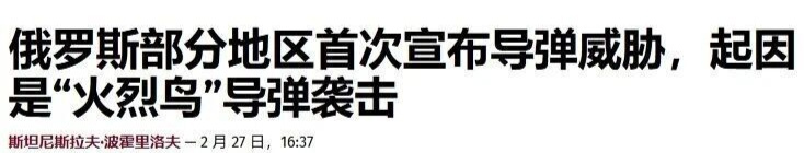2月27日,乌军再次发射至少5枚“火烈鸟”导弹,导致俄罗斯至少13个地区首次同时宣布面临导弹威胁,大部分地区并非边境地区。