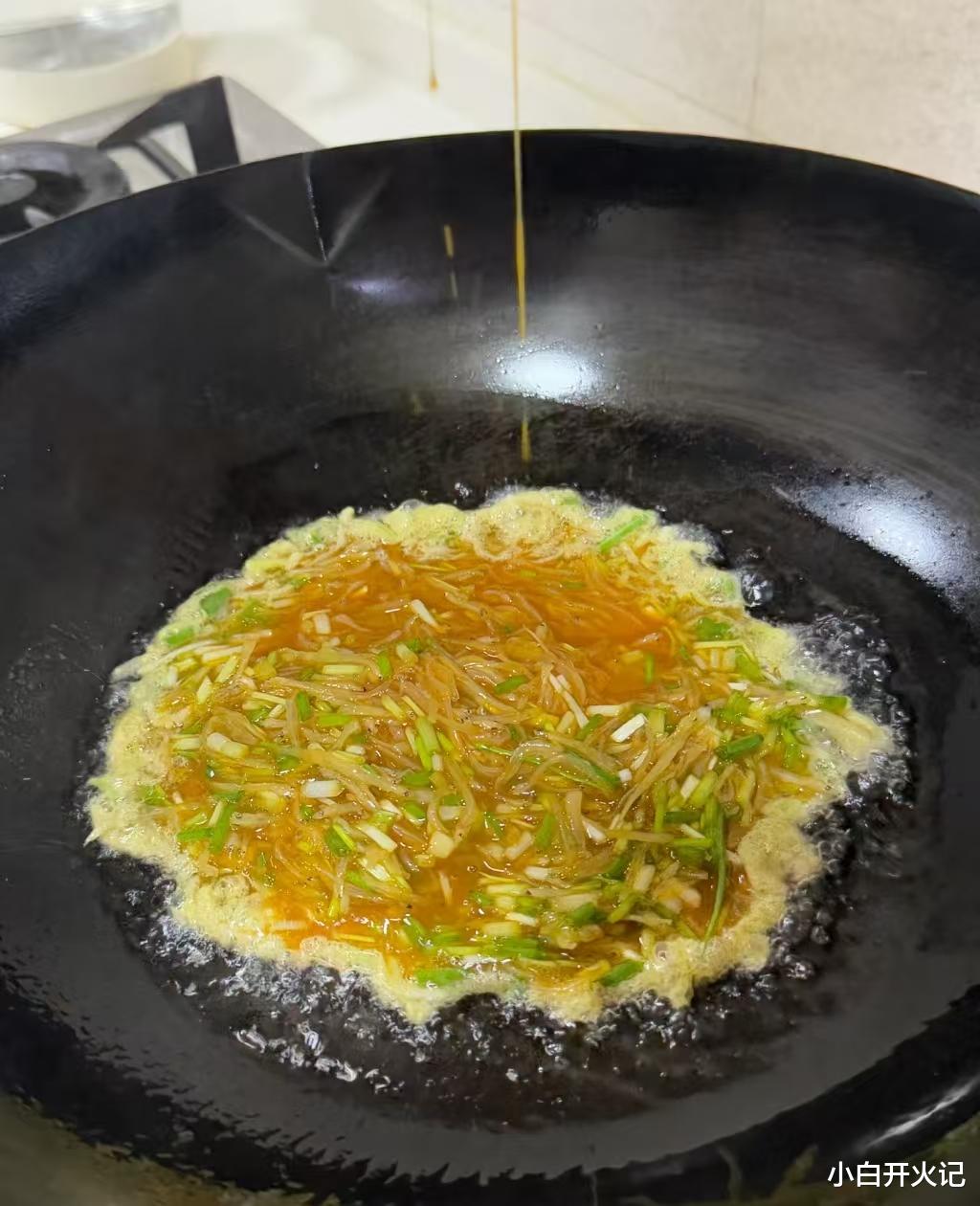 锅气是隐藏彩蛋。不粘锅先空烧10秒,到“水珠落进去刚好跳舞”的温度,倒油,油量只润锅底即可。油热后转小火,先下一半葱花,“滋啦”一声让葱香给油“定妆”,紧接着银鱼沥干水分滑进去。注意,银鱼带一点水没关系,那点水分遇到热油会瞬间蒸汽化,反而给鱼肉穿上一层“保湿面膜”。全程小火,用铲子轻轻推,10秒左右边缘由透明变白即可,千万别等全白,余温会继续加热。
