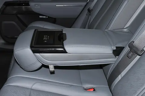 座椅系统奢享MPV级舒适体验。主驾支持14向电动调节(含腿托),标配通风/加热/按摩/记忆功能;后排靠背支持44°超大角度电动调节,可一键切换至半躺姿态。创新后排套装(选装):5000元可升级355mm连体式电动腿托+后排智能桌板,桌板内嵌13英寸2K OLED智慧屏,实现观影、办公、网课多场景自由。特别是热石理疗技术,座椅石墨烯加热系统可在5分钟内从0℃升温至40℃,结合仿穴位按摩程序,缓解长途疲劳。试驾的75kWh后驱Max版配备了石墨烯加热功能,升温速度令人印象深刻。在近期广州十几度的天气里,开启加热后不到一分钟就能感受到明显的温暖。