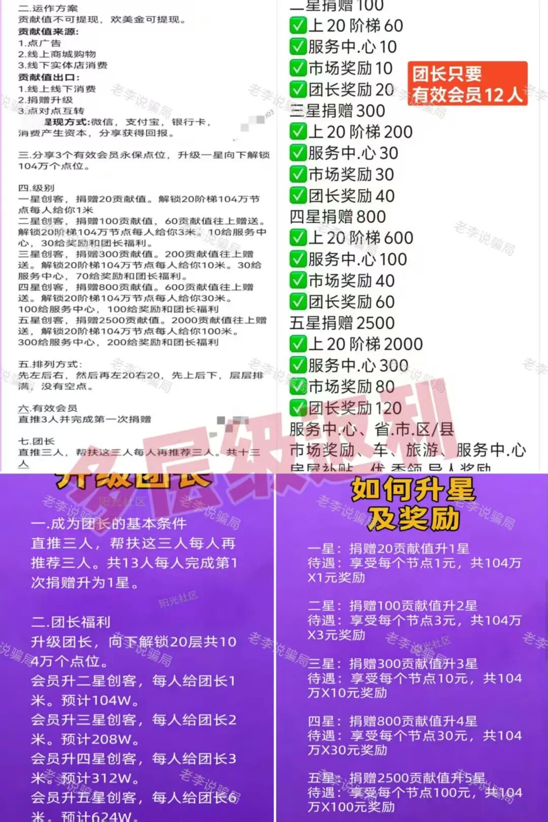 与者需要拉拢新会员加入并同样完成“捐赠”,同时通过“帮扶”下线拉人来维持自身点位和获取“团队奖励”。