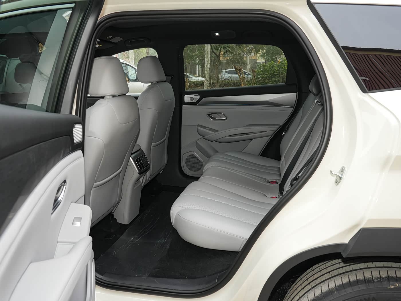 空间方面,既然这款车是中型SUV,车内空间就不会很局促,坐在后排座椅上可以轻松翘起二郎腿,而且后排地板十分平整,再加上全系标配的不可开启全景天幕,车内十分通透。