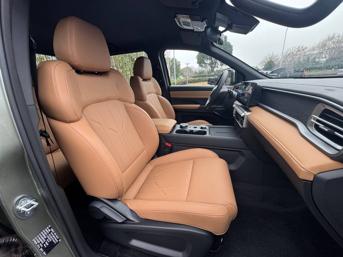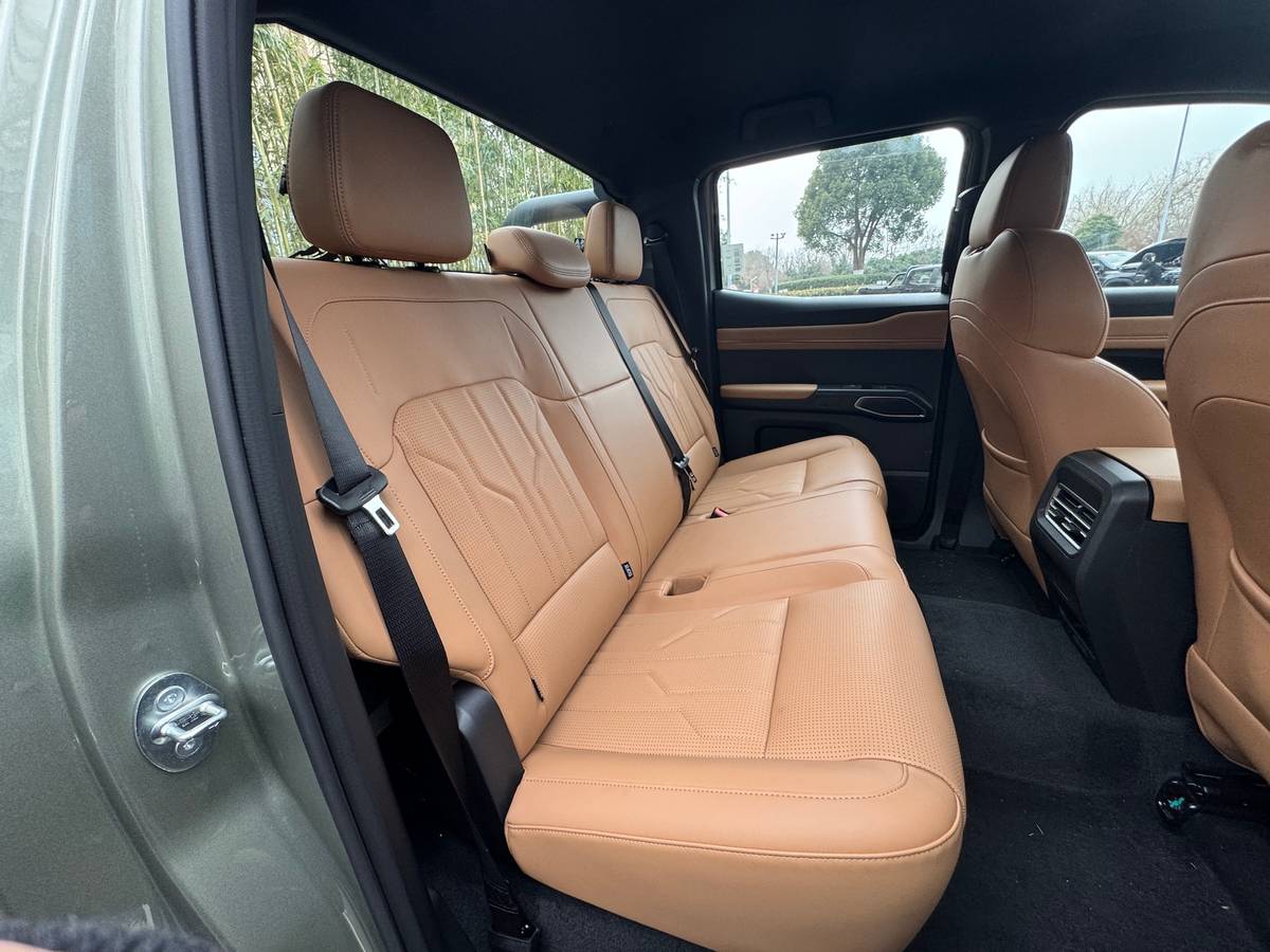 以往说到皮卡,大多数人能够联想到的都是工具车,材质粗糙,内饰设计简单,不够精致。而在新能源时代,皮卡也开始精致起来,内饰使用双色拼接,大量的软材质包裹,让手感获得了提升,更像是家用车,而不再是工具。