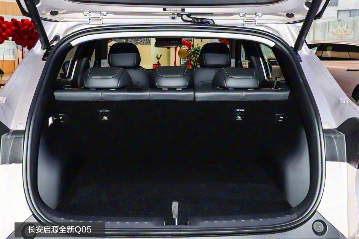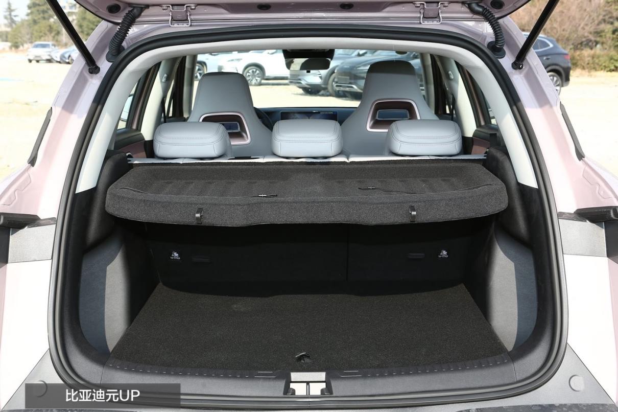 从储物看,元UP的标准后备厢为340L,这其实也佐证了我说它更适合3-4人出行,要是更多人的话,可能行李就要作取舍了。相比之下,长安启源全新Q05的540L确实要让人省心一些,就是冬天约上朋友去跑温泉,甚至是滑雪,这行李也都放得下。
