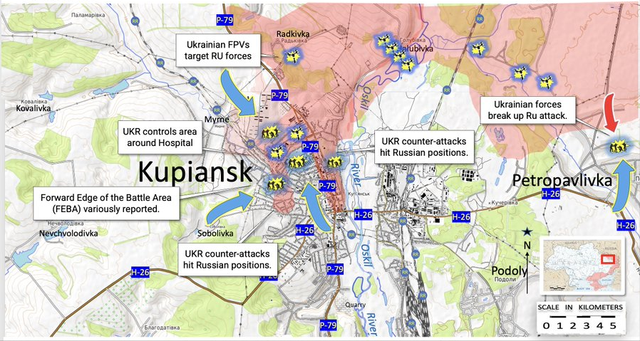 库皮扬斯克方向,过去24小时,乌军继续在北城区反击,并成功收复了医院周边区域。