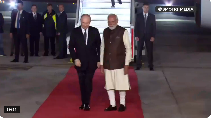 普京抵达印度,受到莫迪高规格接待——亲自迎接。