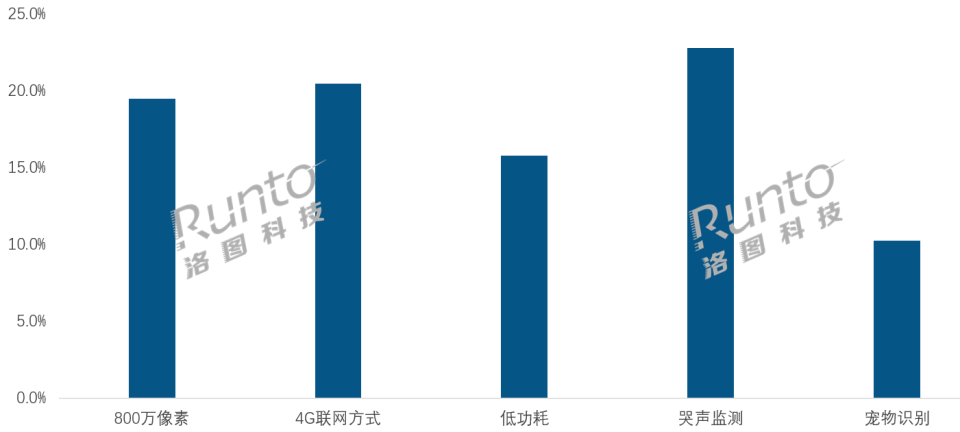 从市场表现来看,细分场景的产品均有增长,2025年,在传统主流电商平台上,带哭声监测功能的摄像头销量份额达22.8%,较2024年提升了1.2个百分点;带宠物识别功能的摄像头销量规模更是迎来高增长,销量规模同比增幅达87.3%,销量份额为10.3%。
