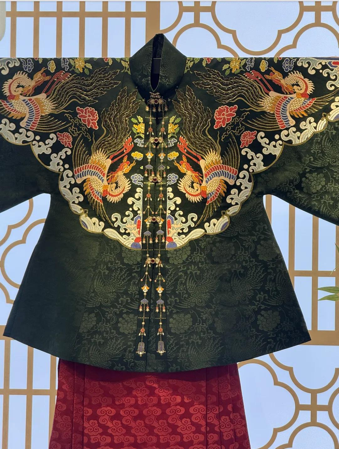 一开始吸引我的,是展厅里最贵的东西——一件价值百万的非遗云锦汉服,它罕见地撤去了玻璃的保护,让观众能近距离看清丝织的纹理。