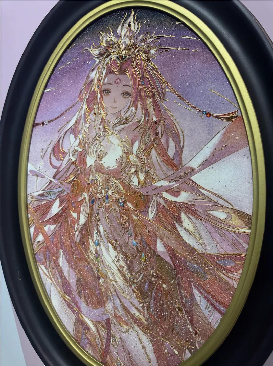这种实感在「星海同声」展区变得更有说服力,这里几乎被玩家的作品填满了:有人一比一复刻了重工礼服,有人接力画了庆生漂流本,往期掐丝珐琅、螺钿画等非遗作品也在展台上闪闪发光。