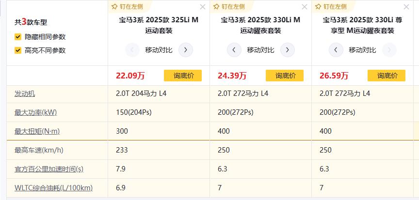 婚后选中型车,纠结宝马3系 2025款 325Li M运动套装、宝马3系 2025款 330Li M运动曜夜套装、宝马3系 2025款 330Li 尊享型 M运动曜夜套装,这三款宝马3系怎么选?笔者认为325Li M运动套装性价比够打,330Li 尊享型“满配”够带劲!