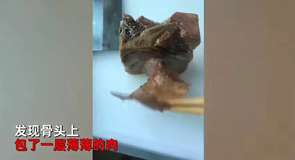 王女士拿起蒸好的“火腿”,凑近仔细端详,终于发现了问题所在。原来,这并非整块的纯肉火腿,而是用一层较薄的肉片紧紧包裹着内部的骨头。外观看似完整,实则内里另有乾坤。王女士这才意识到,自己可能被产品的外包装和名称误导了。