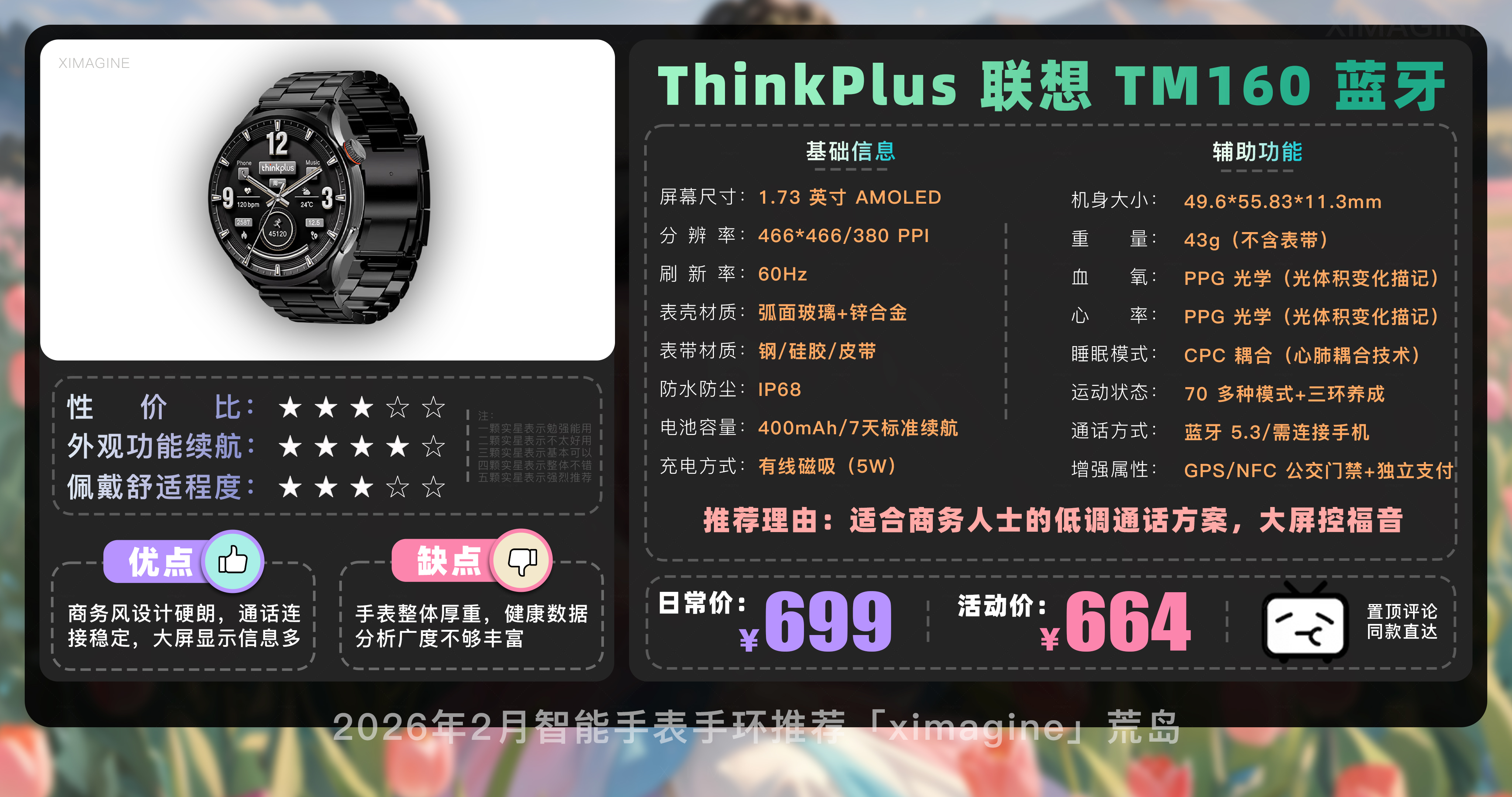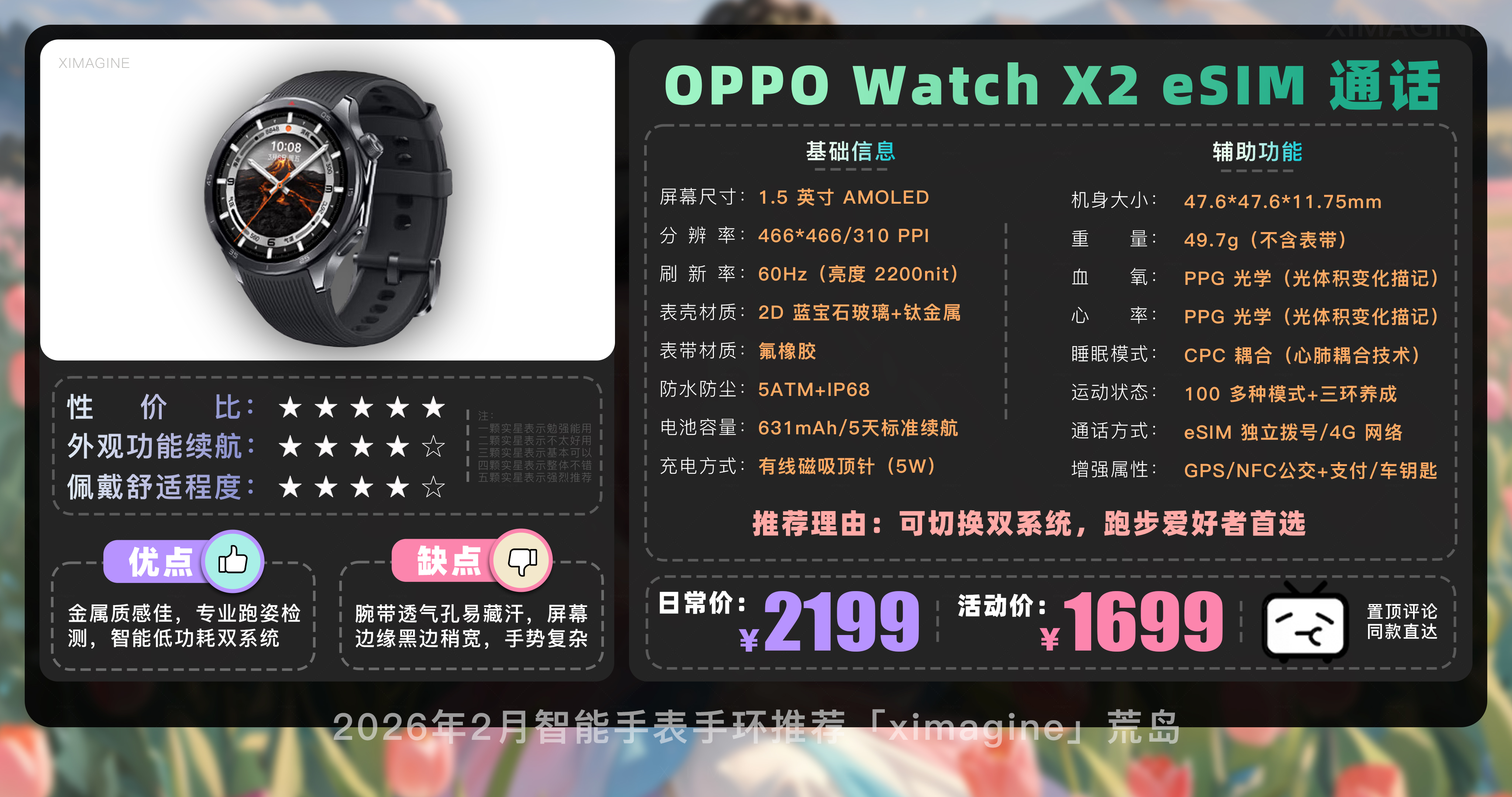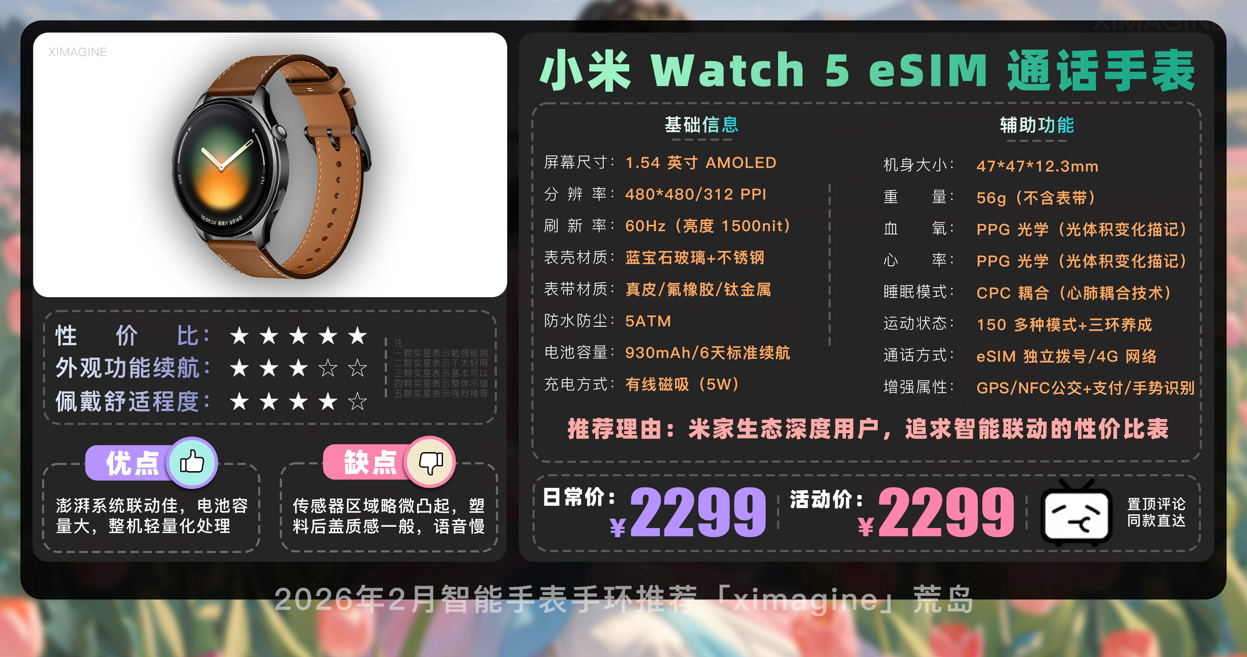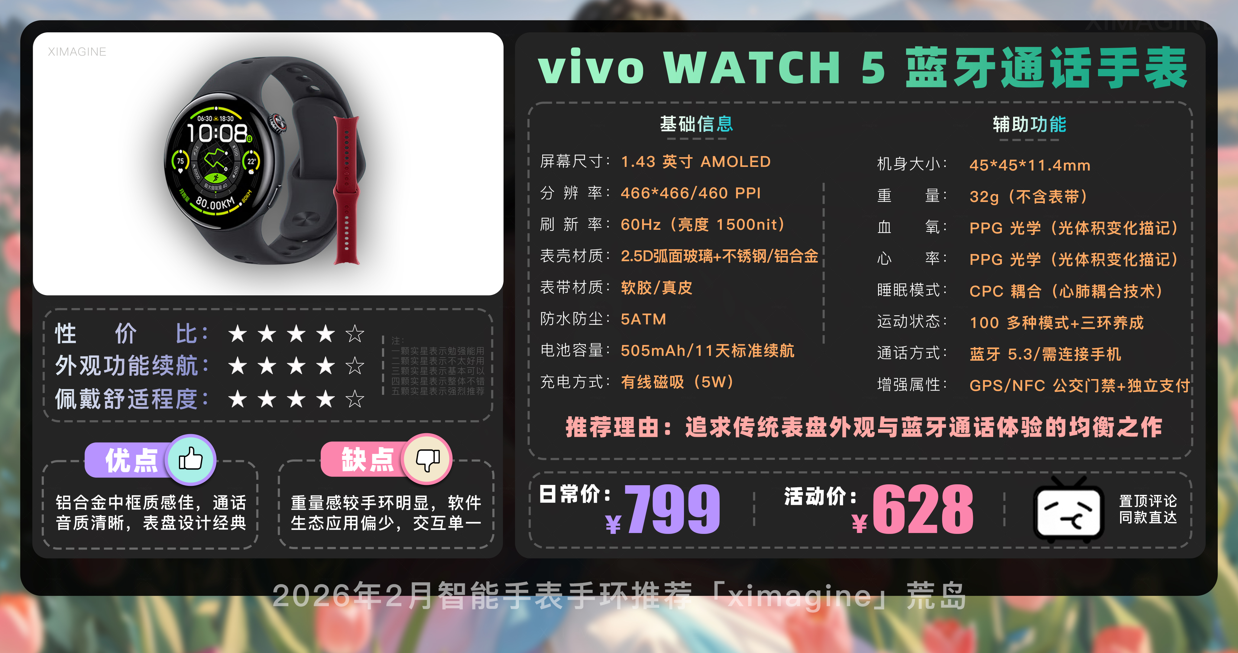 以上就是本期26年2月智能手表手环推荐清单,如果有心水的型号,可以戳置顶评论区对应链接拿下!在这个信息爆炸的时代选择戴上它,是为了在忙碌的缝隙里,能有一个声音温柔地提醒我们要按时喝水;是为了放下手机奔向山海时,依然拥有掌控生活的底气;如果觉得内容有所帮助,请关注荒岛!如果对选购智能穿戴设备还有疑问,欢迎在评论区留言我会尽快回复大家。本期就到这,我是「ximagine」下期再会!