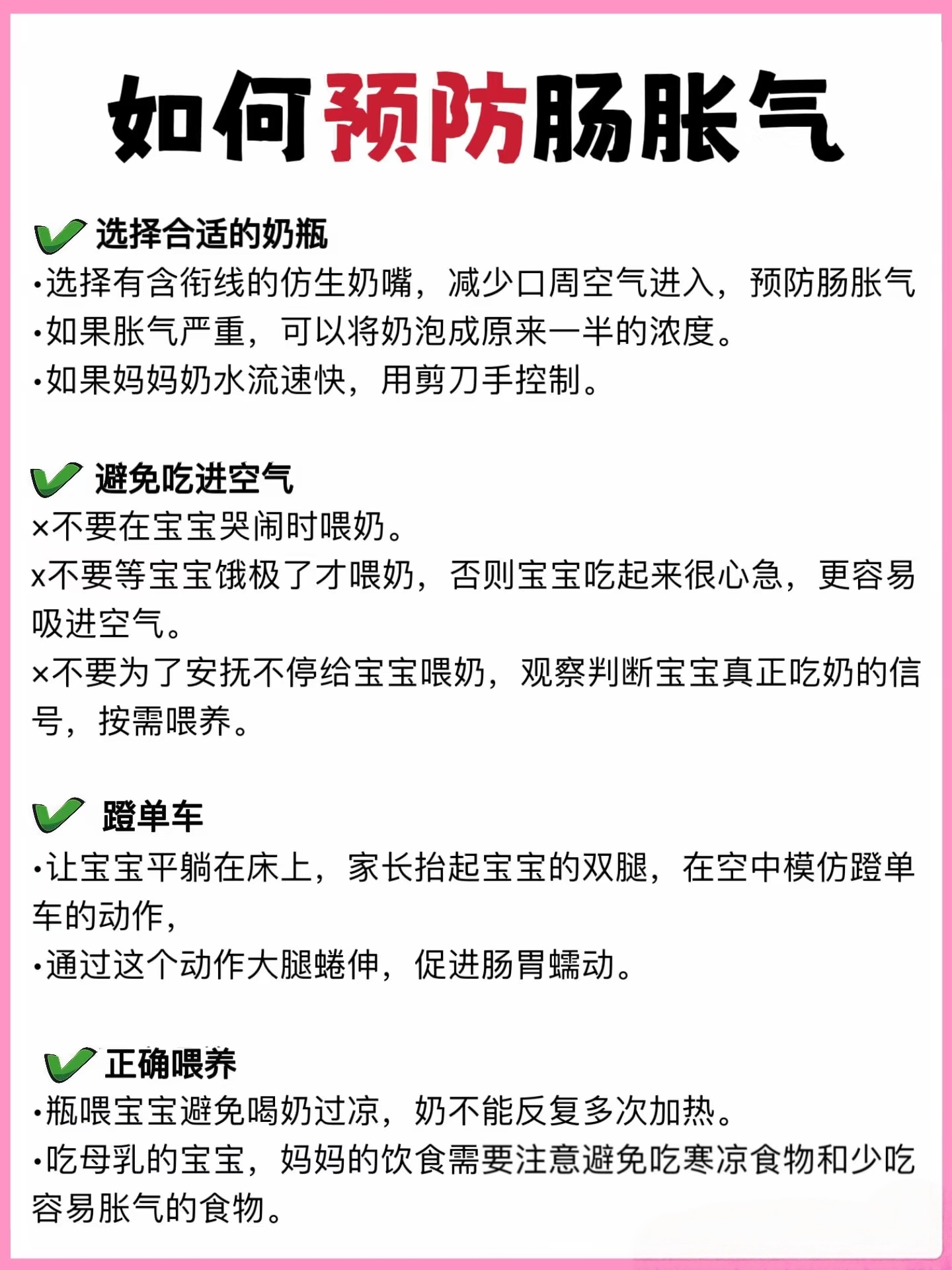 · 瓶喂时注意:使用防胀气奶瓶,喂奶时让奶液充满奶嘴前端,避免吸入空气。
