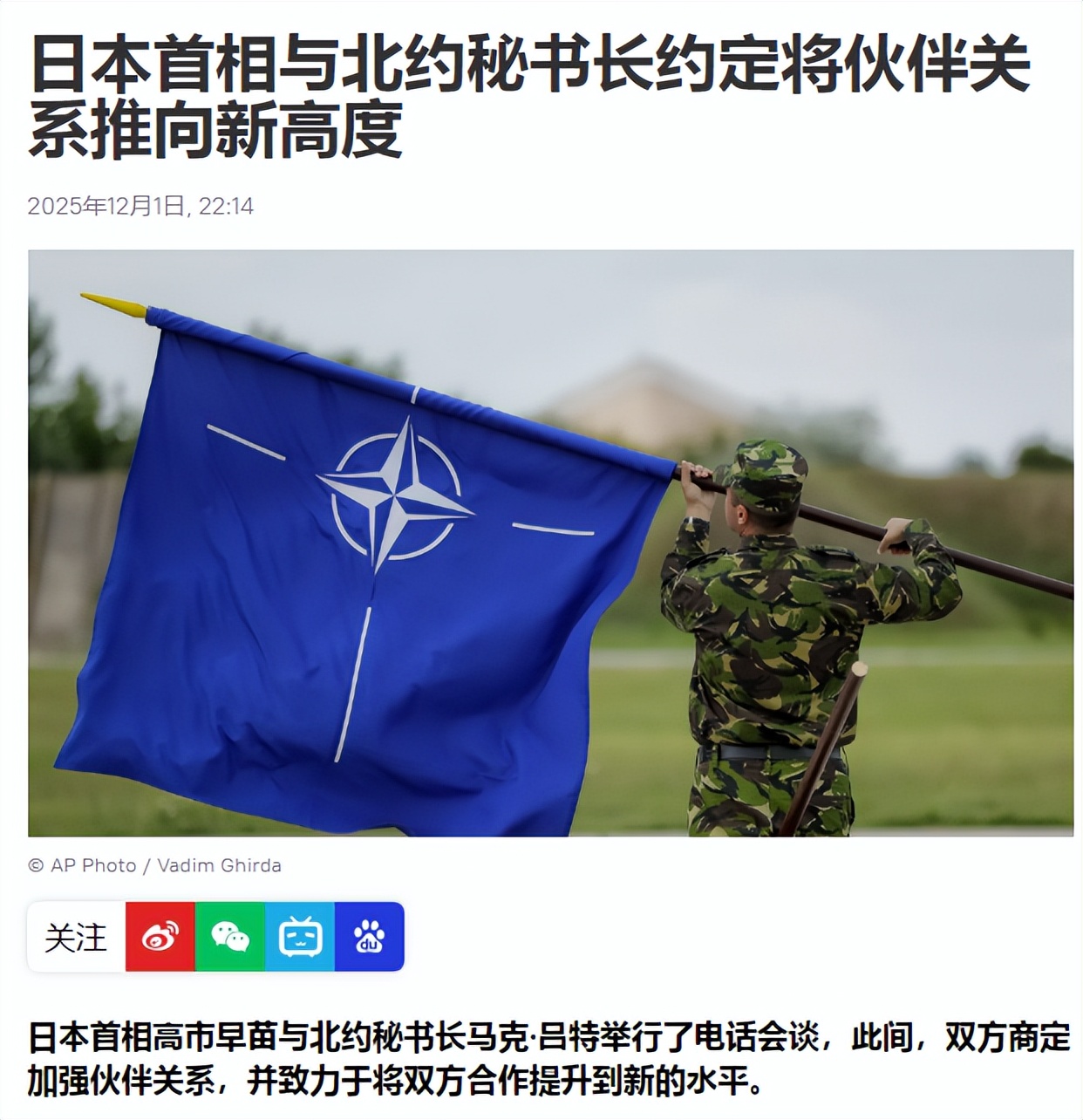 这是高市早苗打出的第二张牌,想要引强援北约入局亚太,共同应对来自我方的压力。