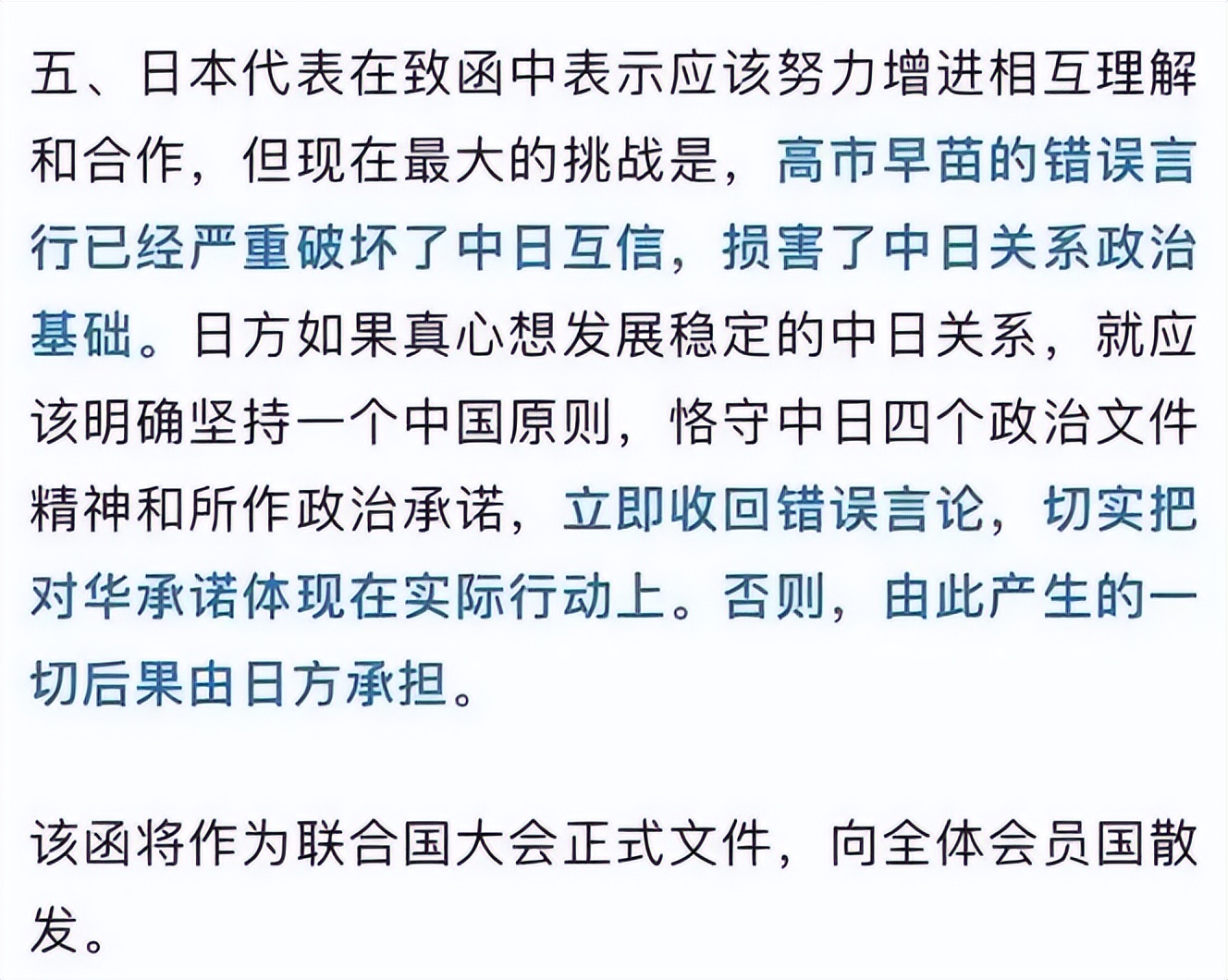 第一次是11月21日,常驻联合国代表傅聪大使致函联合国秘书长古特雷斯,就日本首相高市早苗涉华错误言行阐明中国政府立场。