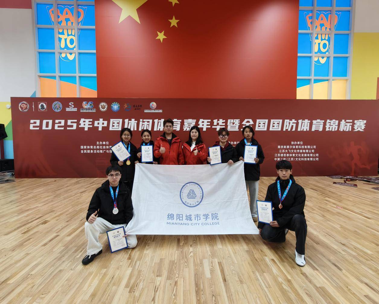 近日,由国家体育总局社会体育指导中心主办的2025年全国国防体育运动锦标赛,在江苏省江阴市飞马体育公园圆满落下帷幕。作为全国国防体育运动的顶级赛事,本次大赛吸引了来自全国22个省的65支代表队、2000余名运动员同台竞技,竞争异常激烈。绵阳城市学院武术队首次参赛便崭露头角,一举斩获3枚金牌、1枚银牌、2枚铜牌的优异成绩。