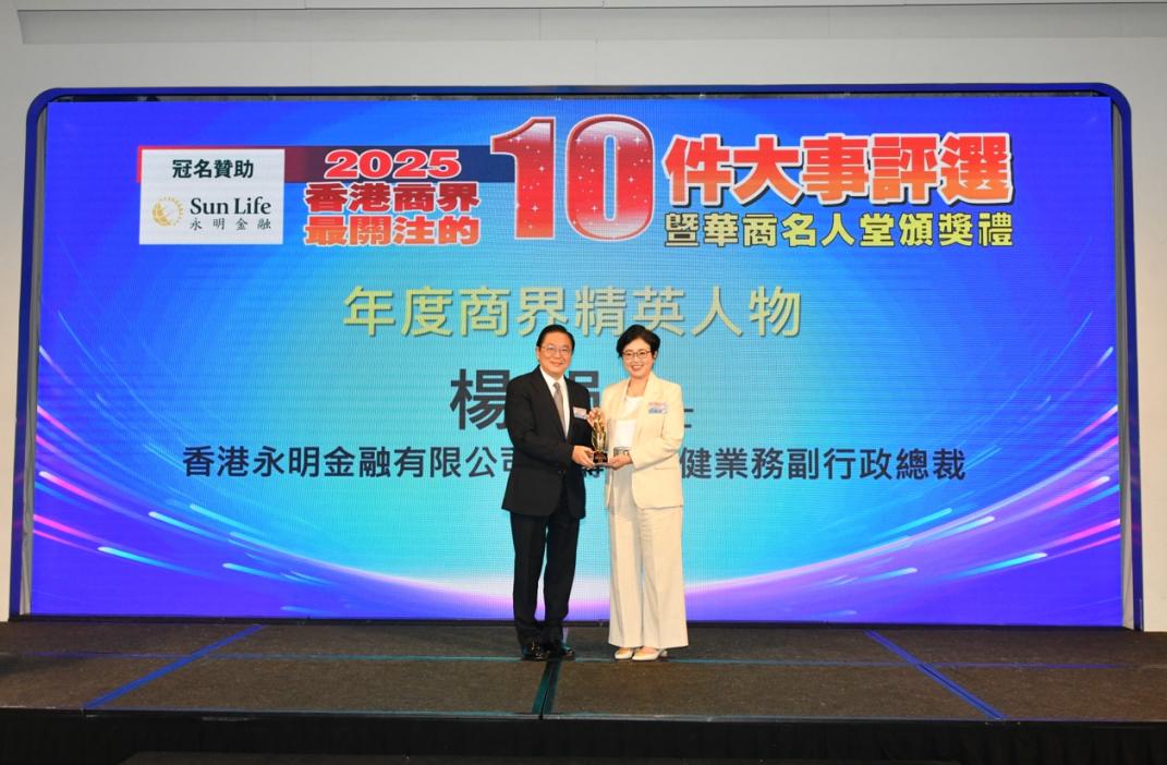 2026年2月10日,由香港永明金融有限公司(「Sun Life永明」)冠名赞助的「2025香港商界最关注的十件大事」暨华商名人堂大奖颁奖典礼,在香港喜来登酒店隆重举行。活动现场群英荟萃,来自香港商界的领袖精英齐聚一堂,共同回顾过去一年香港商业领域的重要事件。