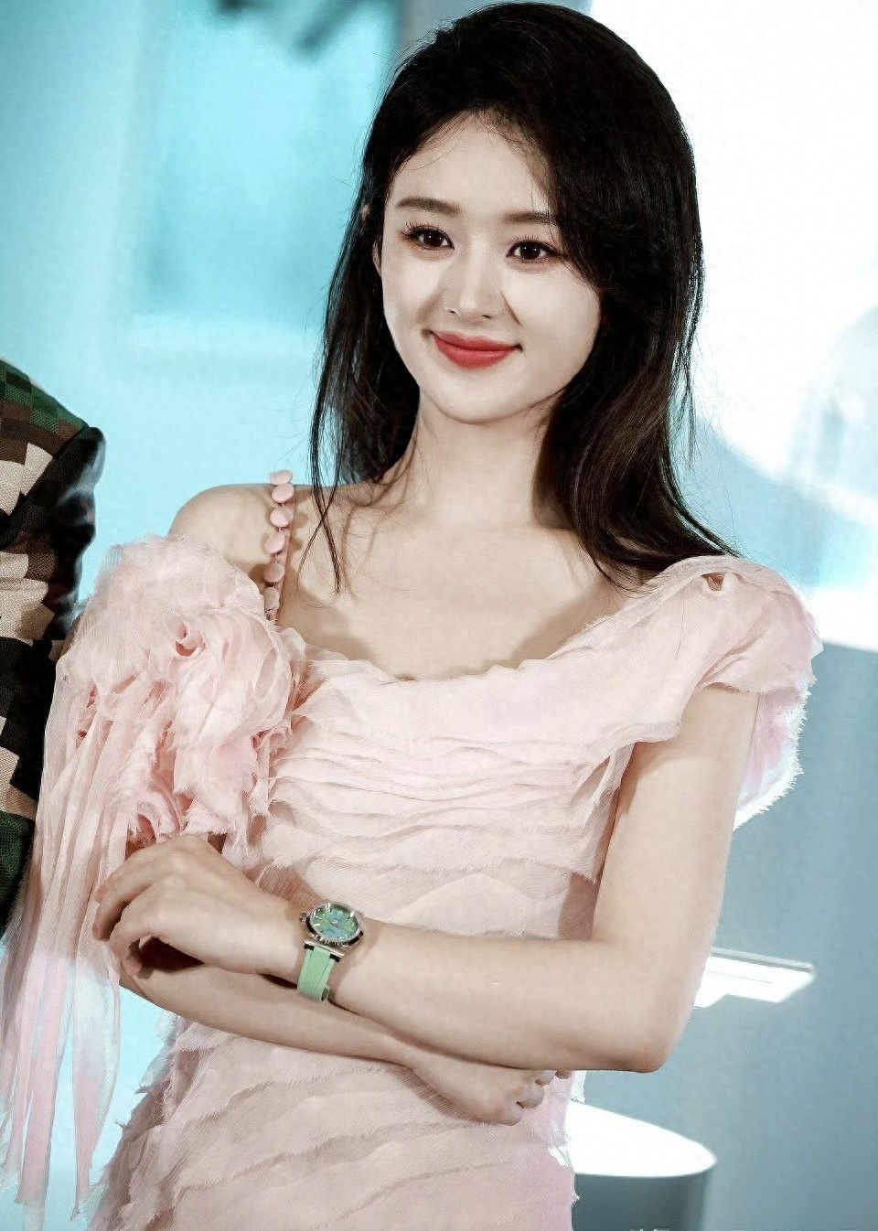 当赵丽颖身着粉色荷叶边长裙亮相,春日气息扑面而来。这位常以坚韧角色示人的演员,难得展现甜美一面,裙摆轻扬间尽显温柔魅力。