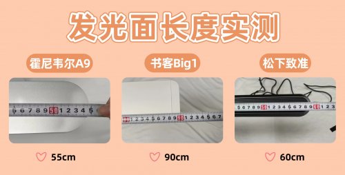 在光照范围的硬件基础上,书客Big1以90cm的超长发光面树立了新的标杆,配合460颗SunArc全光谱阵列灯珠的精密排布,能轻松实现近2米宽桌面的均匀照明,彻底解决阴阳桌面问题。松下致准(60cm)与霍尼韦尔A9(55cm)的发光面长度处于同一梯队,能够满足常规单人书桌(约1.2-1.5米宽)的照明需求,但在面对超大桌面或需要更宽广均匀光场的场景时,覆盖能力则不如书客Big1,边缘区域会出现轻微的亮度衰减。