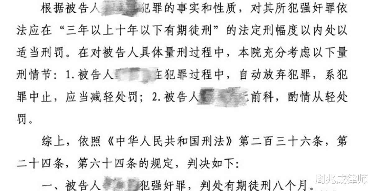 这个案子一审判决下来,男方被认定构成强奸罪,但属于犯罪中止,判了八个月。抵扣掉已经羁押的时间,他很快就能恢复自由。以强奸罪的量刑来说,这已经算非常轻了,但男方的律师仍然很不满,坚持认为当事人根本不构成犯罪。