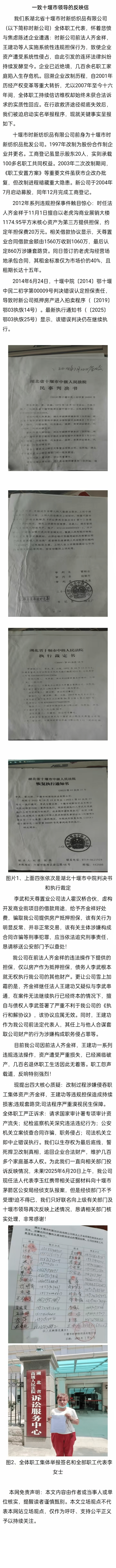 十堰市时新纺织品公司因前法人操作致国有资产损失情况反映