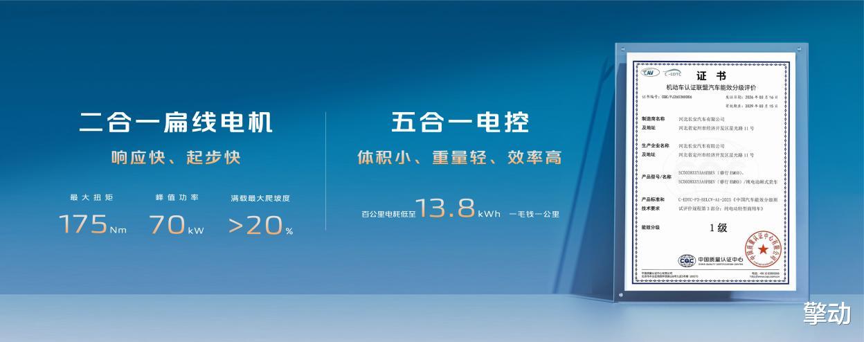 新一代长安睿行EV搭载的央企自研黄金三电系统,实现了电池、电机、电控的深度协同,带来1+1+1>3的可靠体验。