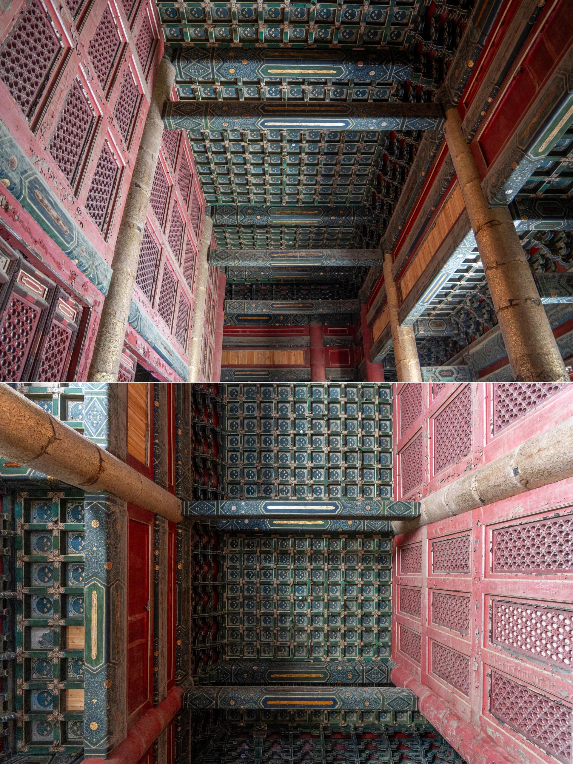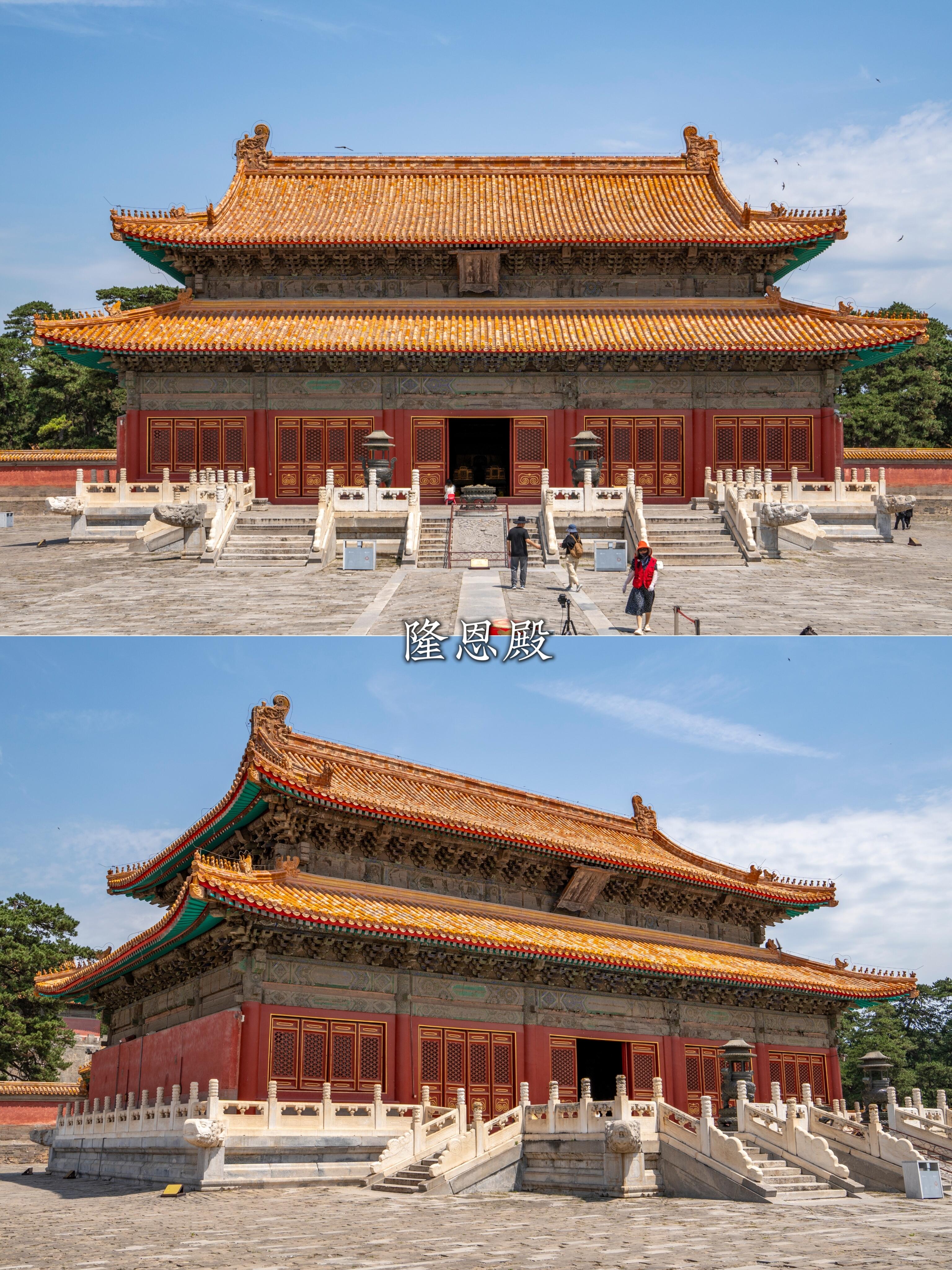 隆恩殿的金丝楠木立柱泛着幽幽光泽,明柱上沥粉贴金的云龙纹虽已黯淡,仍难掩昔日辉煌。站在丹陛石前,想象大典时百官山呼万岁的场景,脚下的青砖不知被多少双官靴磨出凹痕。殿内彩画的旋子图案层层嵌套,每一道线条都经过严格测算,这种对对称与秩序的极致追求,倒与雍正朝严苛的治国风格不谋而合。