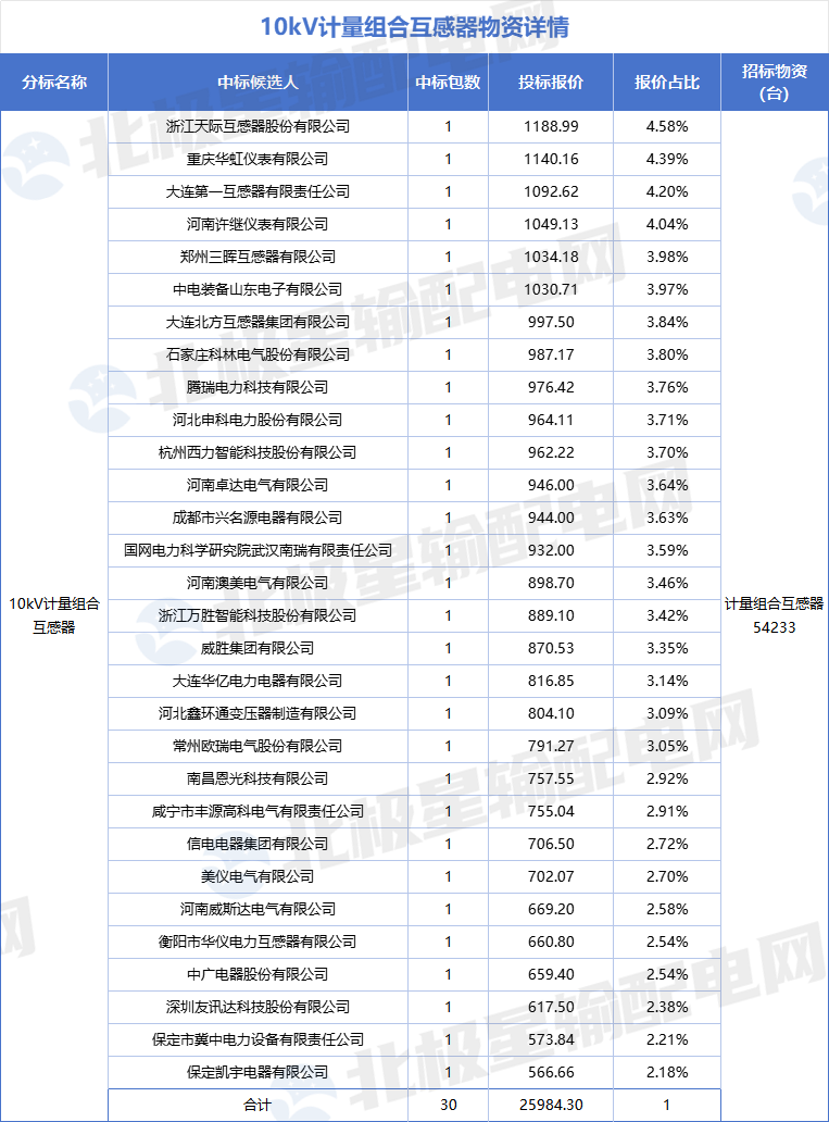 11月24日,国家电网有限公司2025年第八十批采购(营销项目第三次计量设备招标采购)推荐的中标候选人公示。本次招标共10项物资,386个物资包,产生投标报价共计约133143.37 万元。