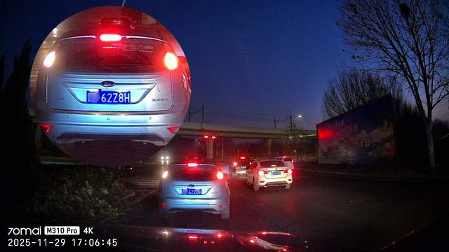 在夜间行车,大家都很担心没有拍下车牌,但M310Pro 4K有大光圈的加持,清晰的程度不止一点点,轻松拍下来前车的车牌,畅享buff叠满的夜视算法。如图下所示,这个夜视录制画面,看到的都羡慕。