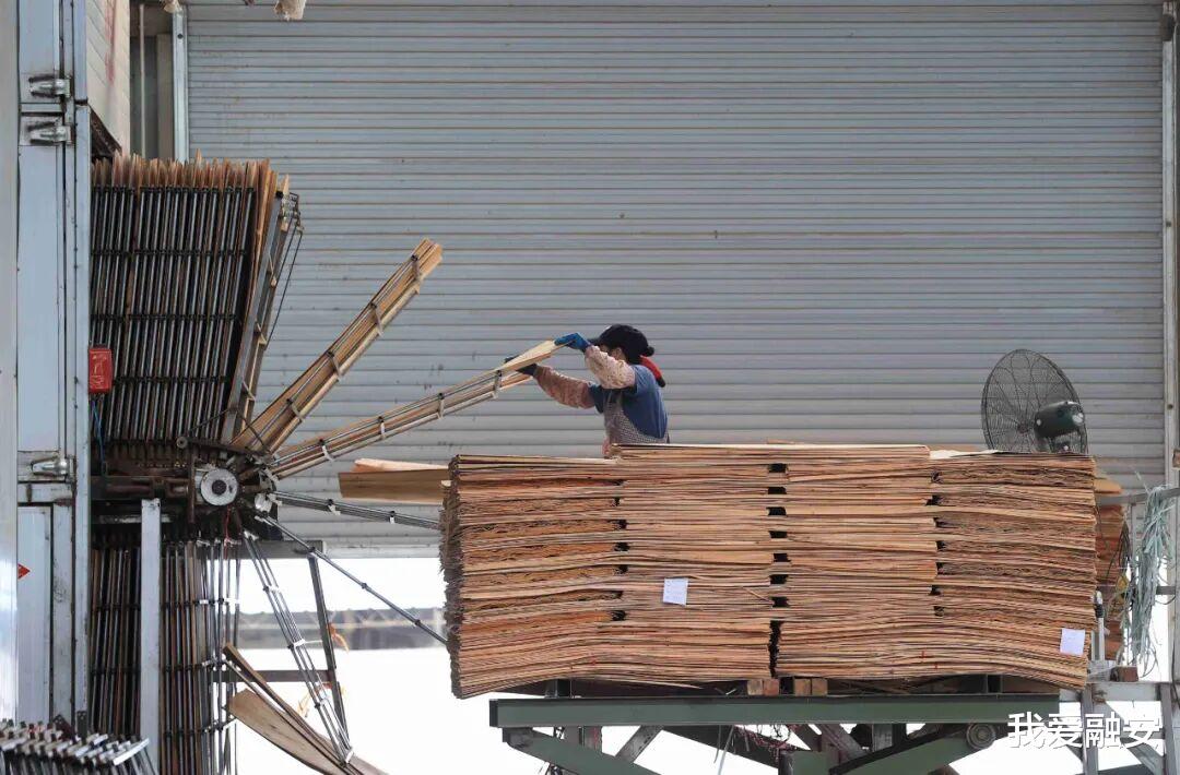 在广西柳州市融安县某香杉生态板生产企业,工人驾驶叉车运送香杉生态板。(谭凯兴 摄)