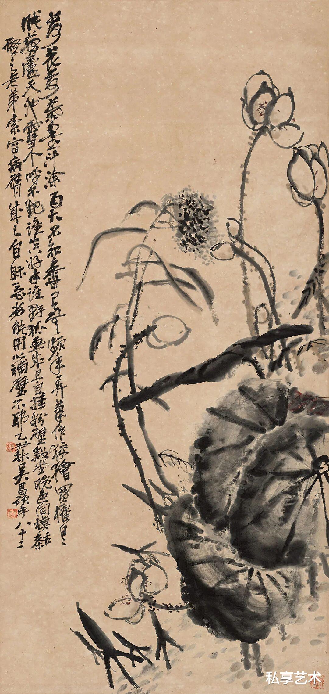 吴昌硕-墨荷-纸本水墨-149.5cm×71cm-西泠印社藏