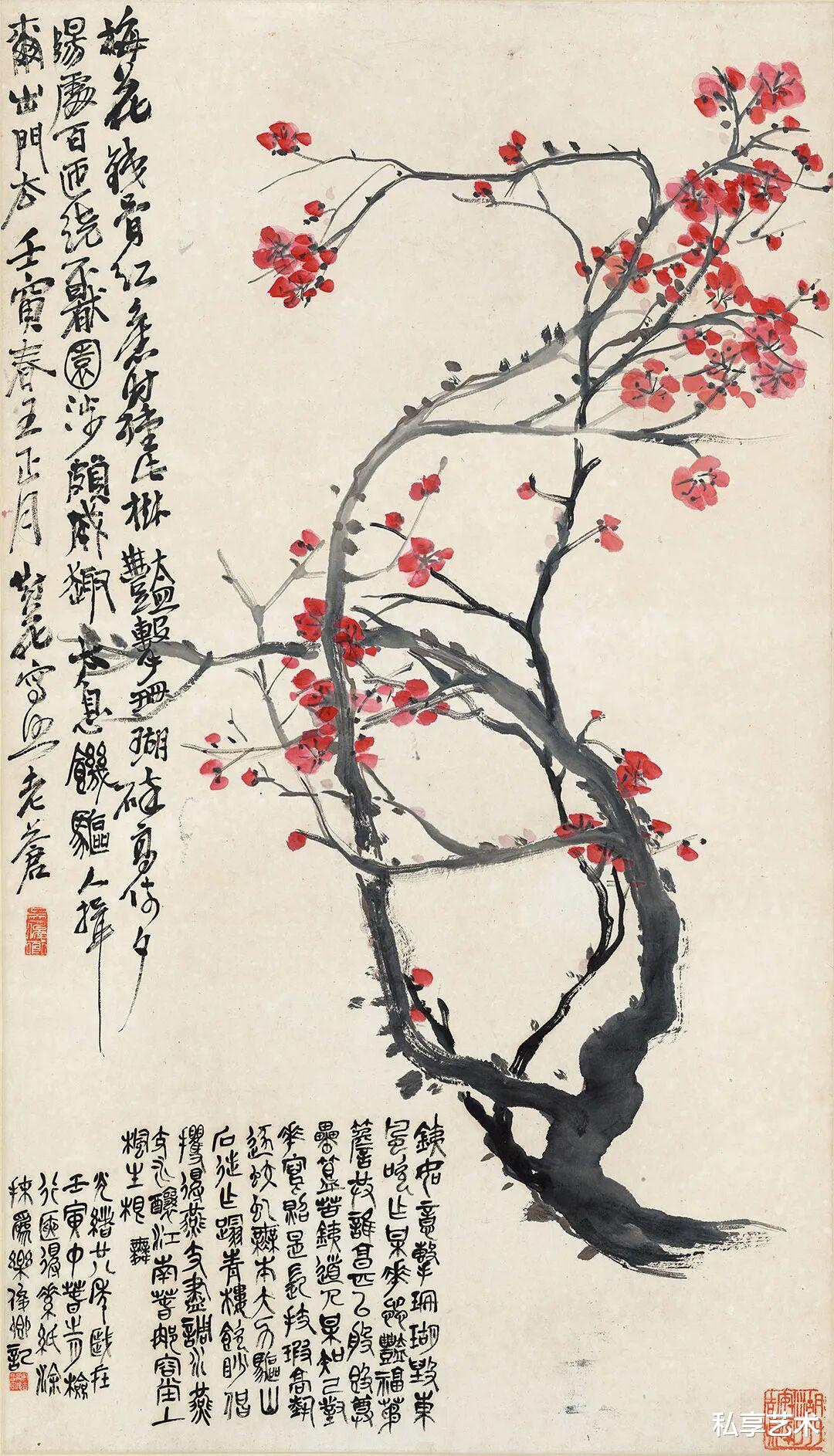 吴昌硕-设色梅花-纸本设色-97×55cm-西泠印社藏