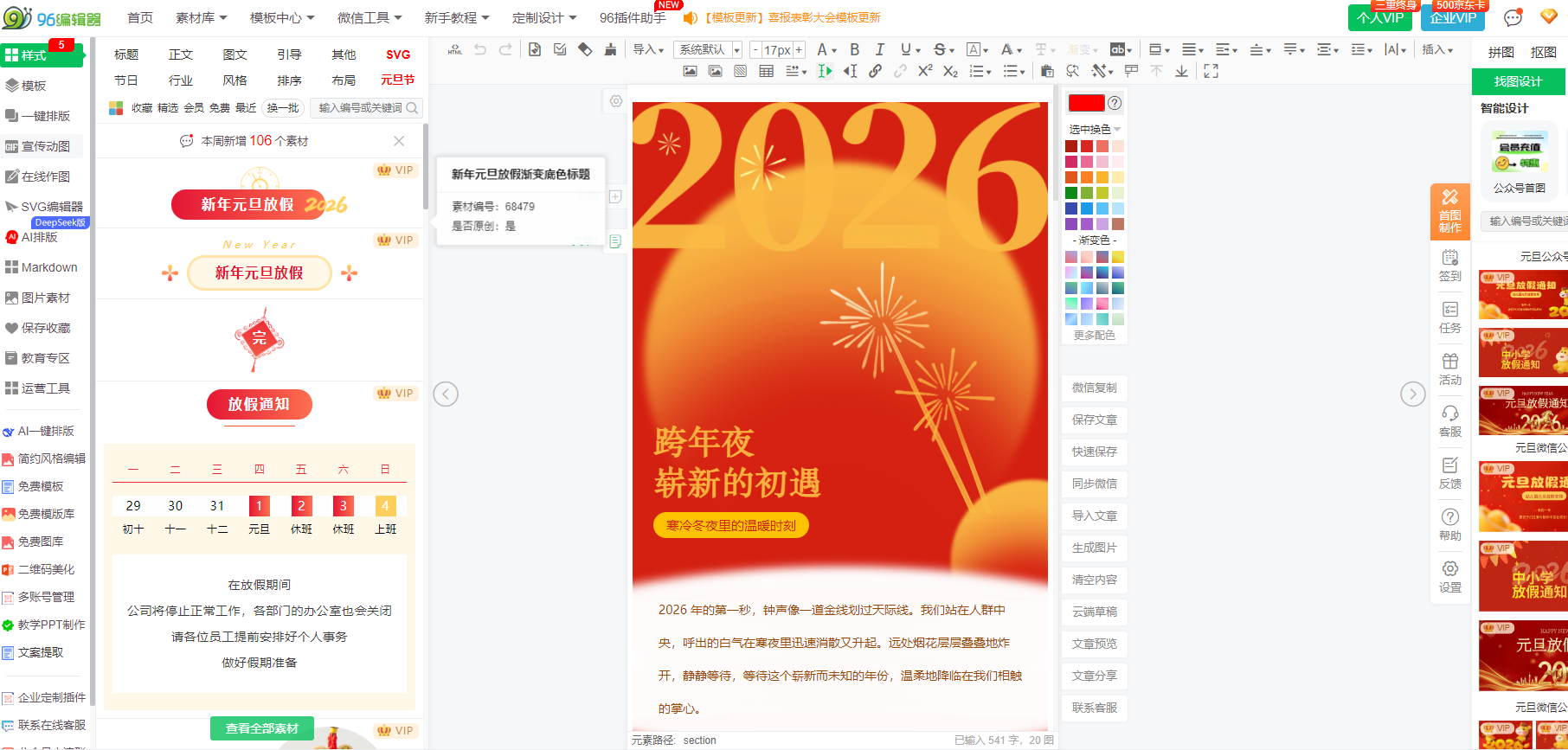 操作:将内容导入96编辑器,使用“秒刷”快速统一全文样式,插入版权图片库中的素材。