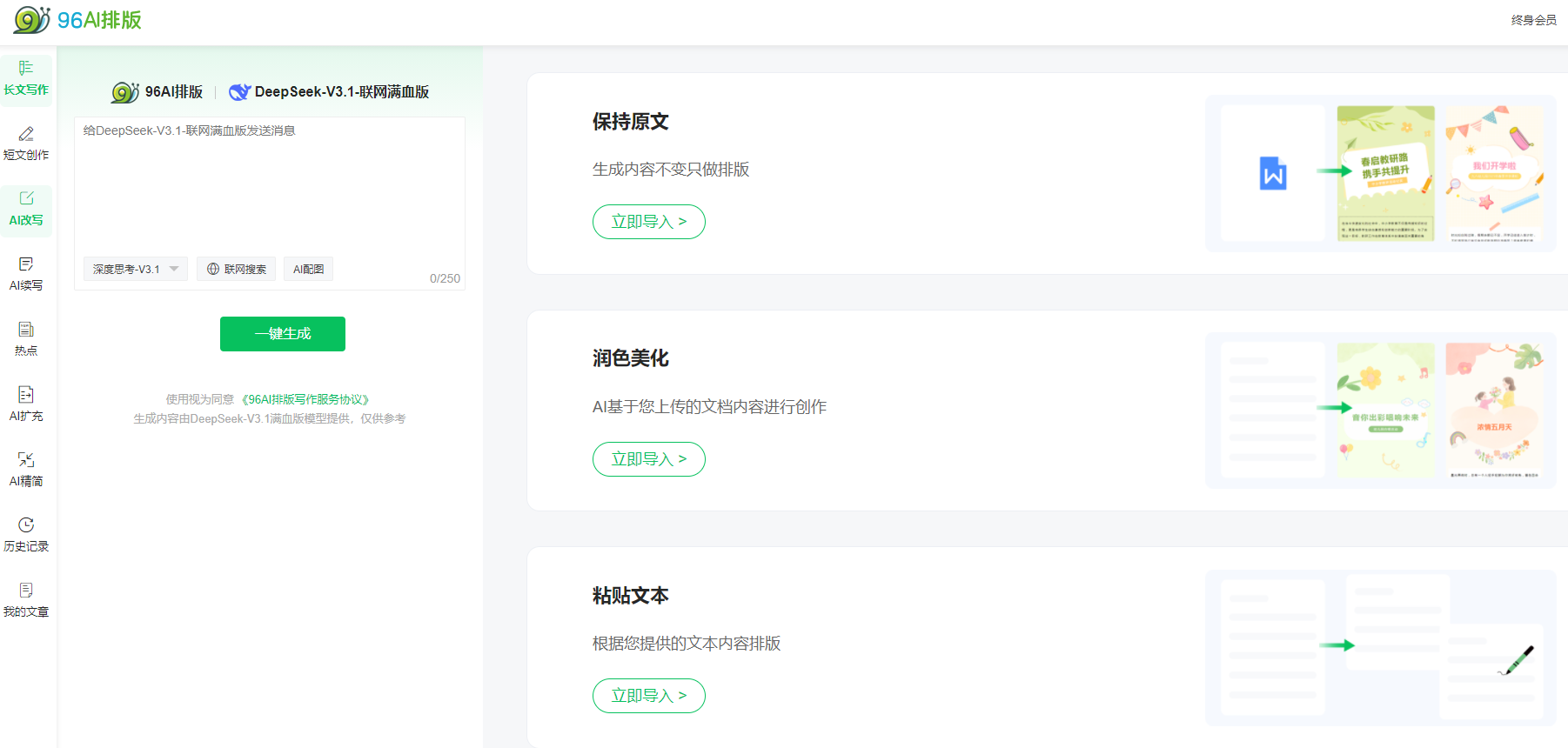 操作:在AI排版页面输入核心主题,生成文章大纲与初稿。