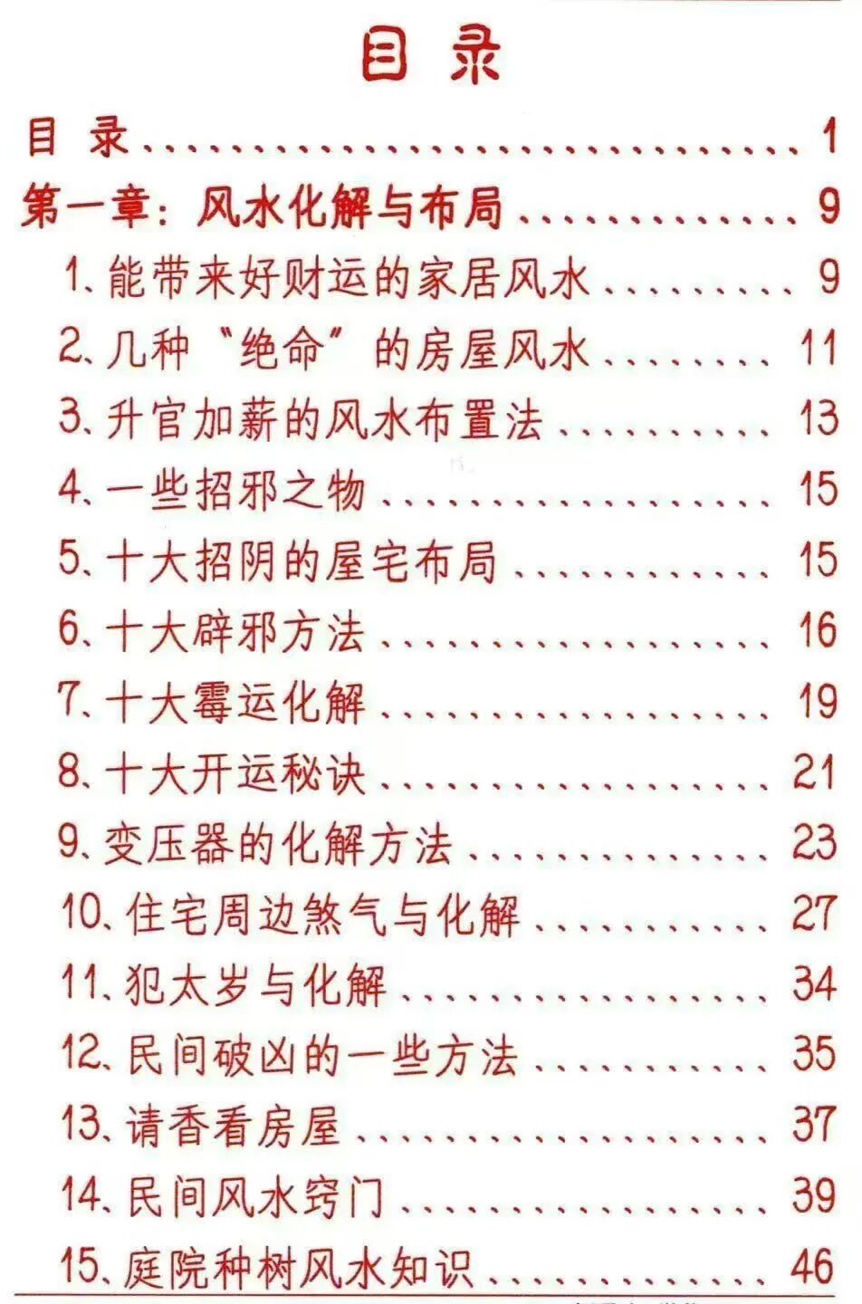 本书最大亮点的是“全场景覆盖、全方法实操”,342页三册分层呈现,六大章节层层递进,兼顾专业性与通俗性,不管是零基础新手,还是深耕风水的从业者,都能学有所用、用之有效。第一章聚焦风水化解与布局,从旺财运家居风水、“绝命”房屋规避,到升官加薪布局、犯太岁化解,再到变压器、周边煞气等具体问题,搭配十大辟邪、霉运化解、开运秘诀,每一种方法都简单易行,无需专业工具,新手亦可直接套用。