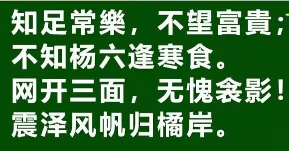 知足常乐,不望富贵;不知杨六逢寒食。网开三面,无愧衾影!震泽风帆归橘岸。