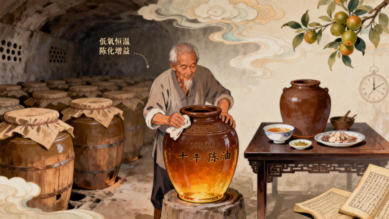 3.2 十年不坏:文明与植物的对话热榨茶油的十年寿命,不仅是科学,更是文明。它能跨越季节、年份、代际,成为家庭传承的一部分:用于药膳、月子、伤药,见证生命的关键瞬间。这样的油不是普通食物,而是文化载体——是中国人理解植物本性的高度,是与时间共存的智慧结晶。十年不坏,不是热榨的“胜利”,而是茶油的“成人礼”,更是文明对植物的温柔驯服。它让茶油克服了所有植物油的宿命——对时间的恐惧,成为“不怕岁月,甚至依赖岁月”的永恒之油。四、结尾:跨越时间的馈赠当你拿起一瓶存放十年的热榨茶油,看到它依旧清亮如初,闻到它更醇厚的香气时,你握住的不仅是一瓶油,更是文明与科学的对话:不是天生强大,而是工艺让它成熟;不是对抗时间,而是与时间共舞。这份长寿命,是热榨的魔法,是茶油的成熟,更是中国文明对自然的深刻理解——原来,最好的储存,是让植物成为它本该成为的样子。氧化、脂肪酶、熟化、多酚平衡、陈化,这些关键词串联起热榨茶油的十年秘密。它告诉我们:真正的好油,不是“越新鲜越好”,而是“越成熟越稳”;真正的智慧,不是征服自然,而是与自然对话。这,就是热榨茶油成为时间朋友的全部答案。《AI 内容原创声明》